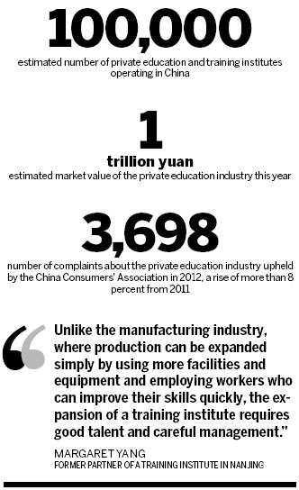 The China Consumers' Association upheld 3,698 complaints about the private education industry in 2012, a rise of more than 8 percent from 2011.