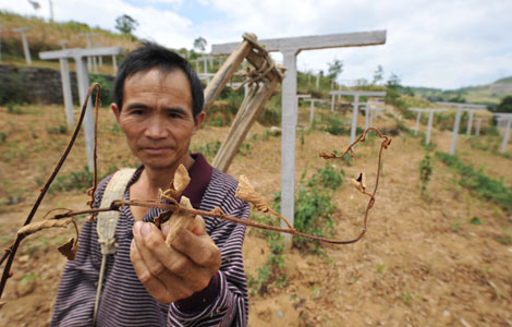 Withered corn from a devastating drought in Liutong village, Guizhou province on Aug 7, 2013.